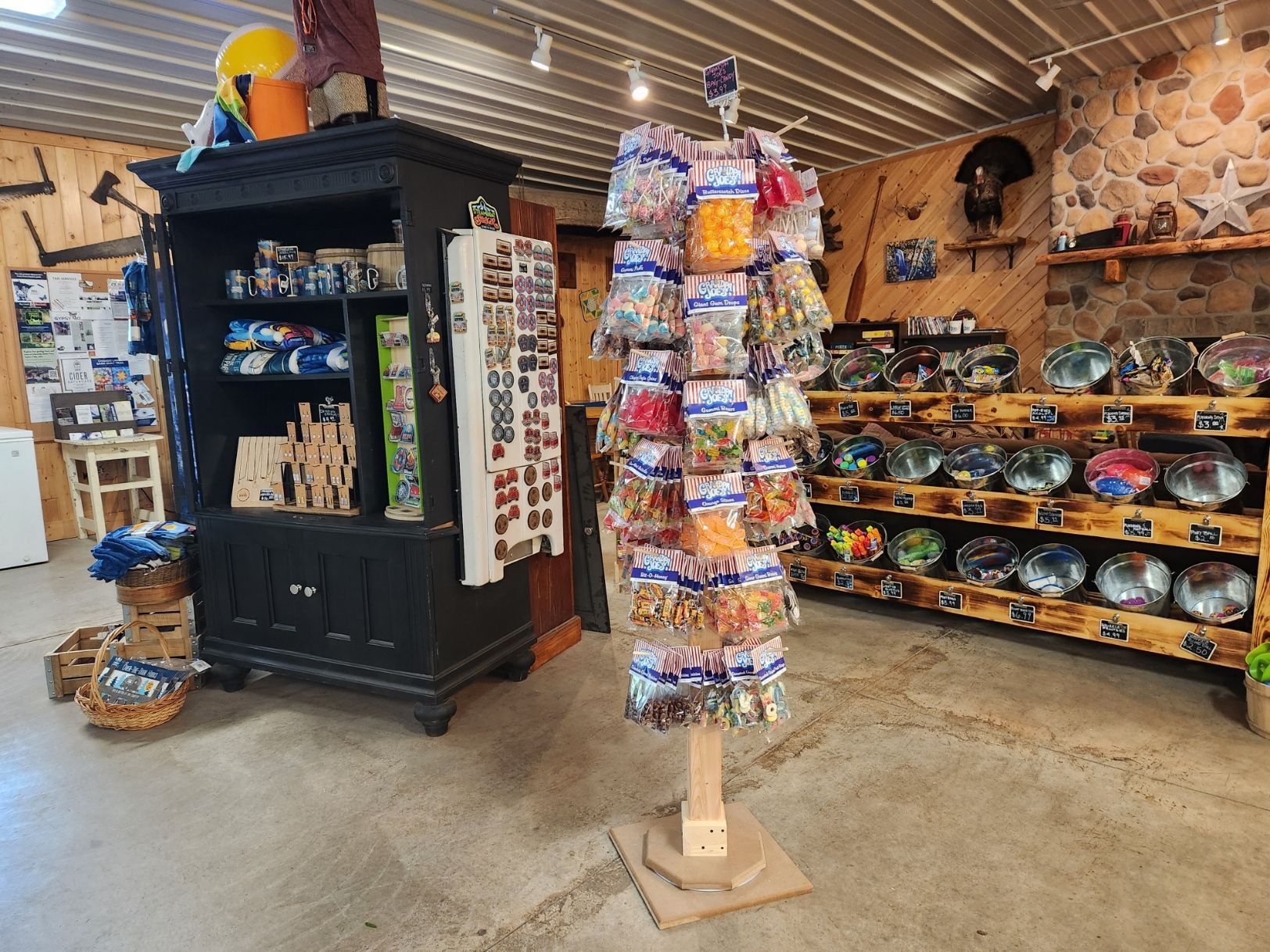 We have local jams, jellies, salsas, maple syrup, jewelry, and souvenirs, camping supplies, cold drinks, snacks, hot pizzas, slushies, on-sale beer, wine & specialty drinks, and so much more!